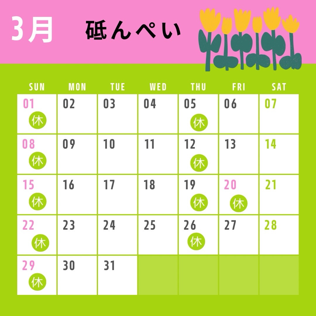3月の営業日のお知らせ